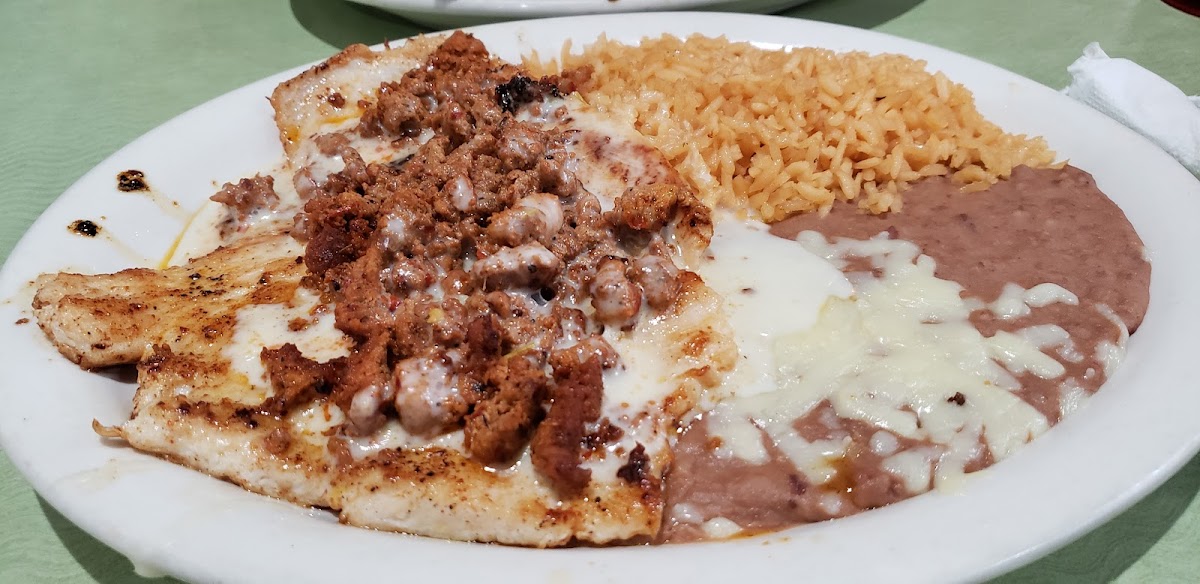 Great service, brought food out as it was done instead of waiting for all meals to be done. We got lunch pollo de la roqueta, chiroqueso and Texas potato. All were very good and good prices.
